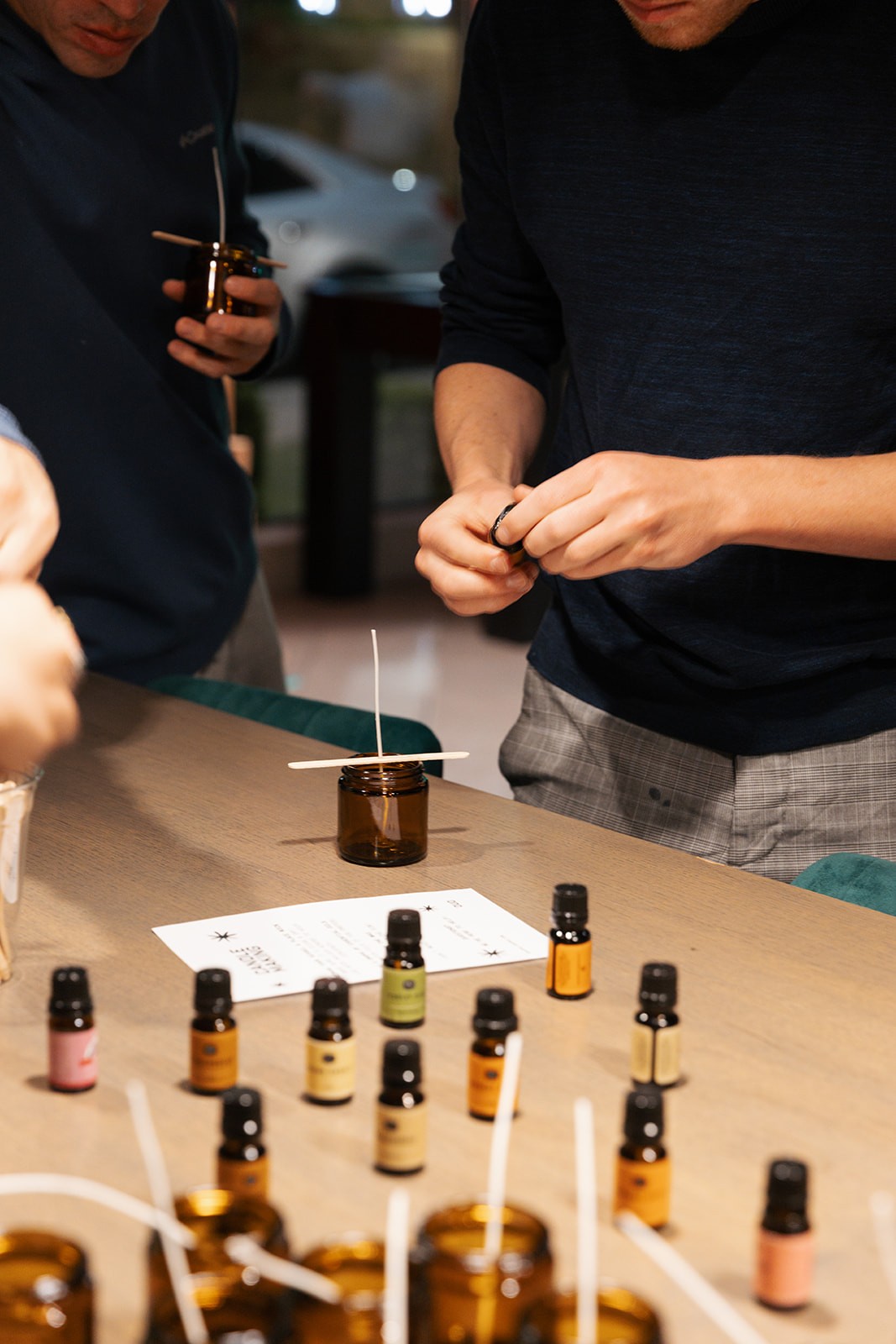 The visual focus of this project was connection and detail. Warm lighting, textured wood tables, melted wax in motion, essential oils being blended by hand — every frame aimed to capture both the tactile process and the social energy of the evening. Beyond documenting the activity itself, the goal was to highlight DUO’s ability to curate experiences that feel intentional, elevated, and effortlessly social. The result is a collection that balances brand storytelling with authentic human interaction — polished, but never staged.